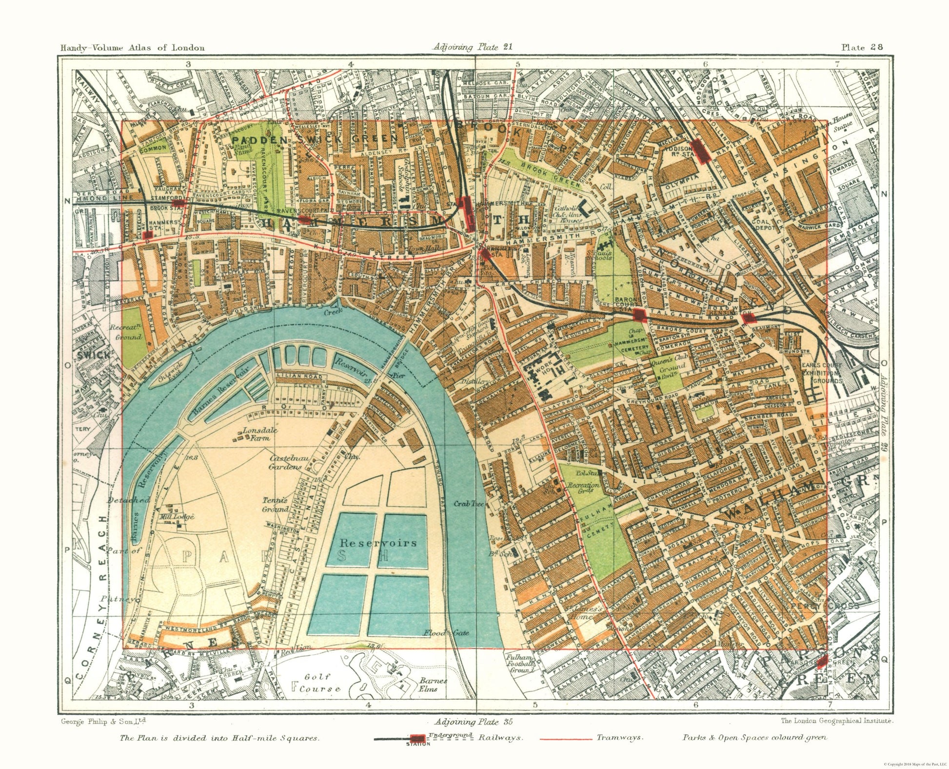 Historic Map Hammersmith London England Philip 1904 28.39 x