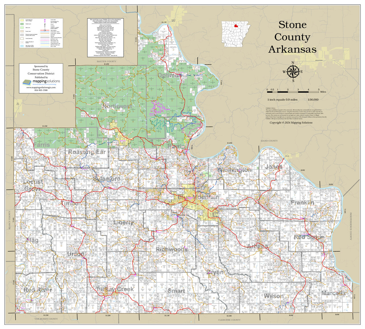 Stone County Arkansas 2024 Wall Map | Mapping Solutions